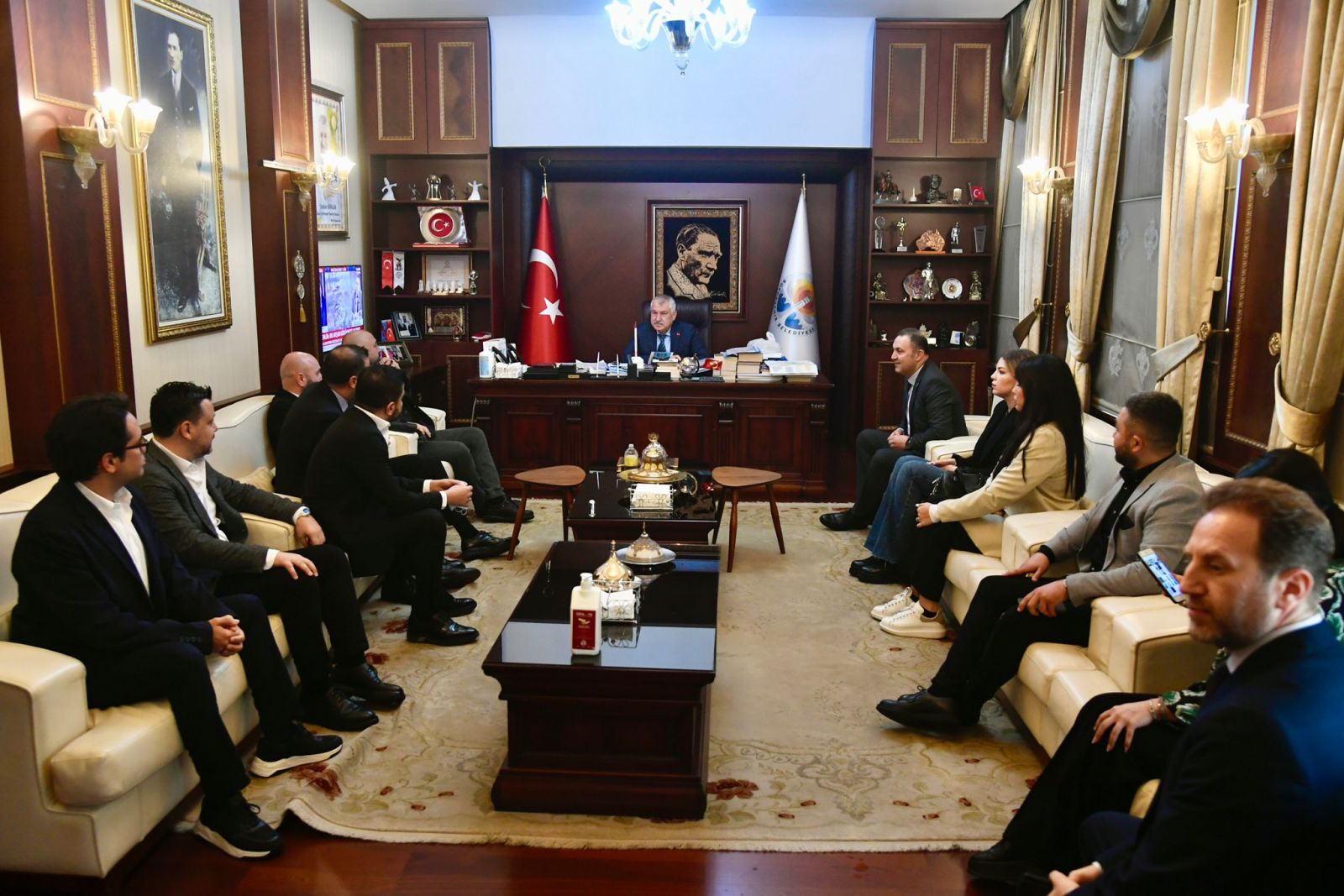 Başkan Zeydan Karalar ile sohbet edip görüş alışverişinde bulunan ADANAGİAD Başkanı Ali Can Boğa ve Yönetim Kurulu Üyeleri de gösterilen ilgi, kabul ve alaka dolayısıyla teşekkür etti. Yönetim kurulu üyelerini tanıtıp kısaca ADANAGİAD'ın bugüne dek yaptıkları ve çalışmaları anlatan ADANAGİAD Başkanı Ali Can Boğa, "İş dünyasının genç temsilcilerini çatısı altında toplayan ADANAGİAD olarak bizler her zaman olduğu gibi Türkiye ve Adana ortak paydasında hep sorumluluk duygusuyla hareket ediyoruz. Kentimizde, bölgemizde ve ülkemizde birlik, beraberlik ve dayanışma içinde refah dolu yarınlar için çaba gösteriyoruz" diye konuştu.