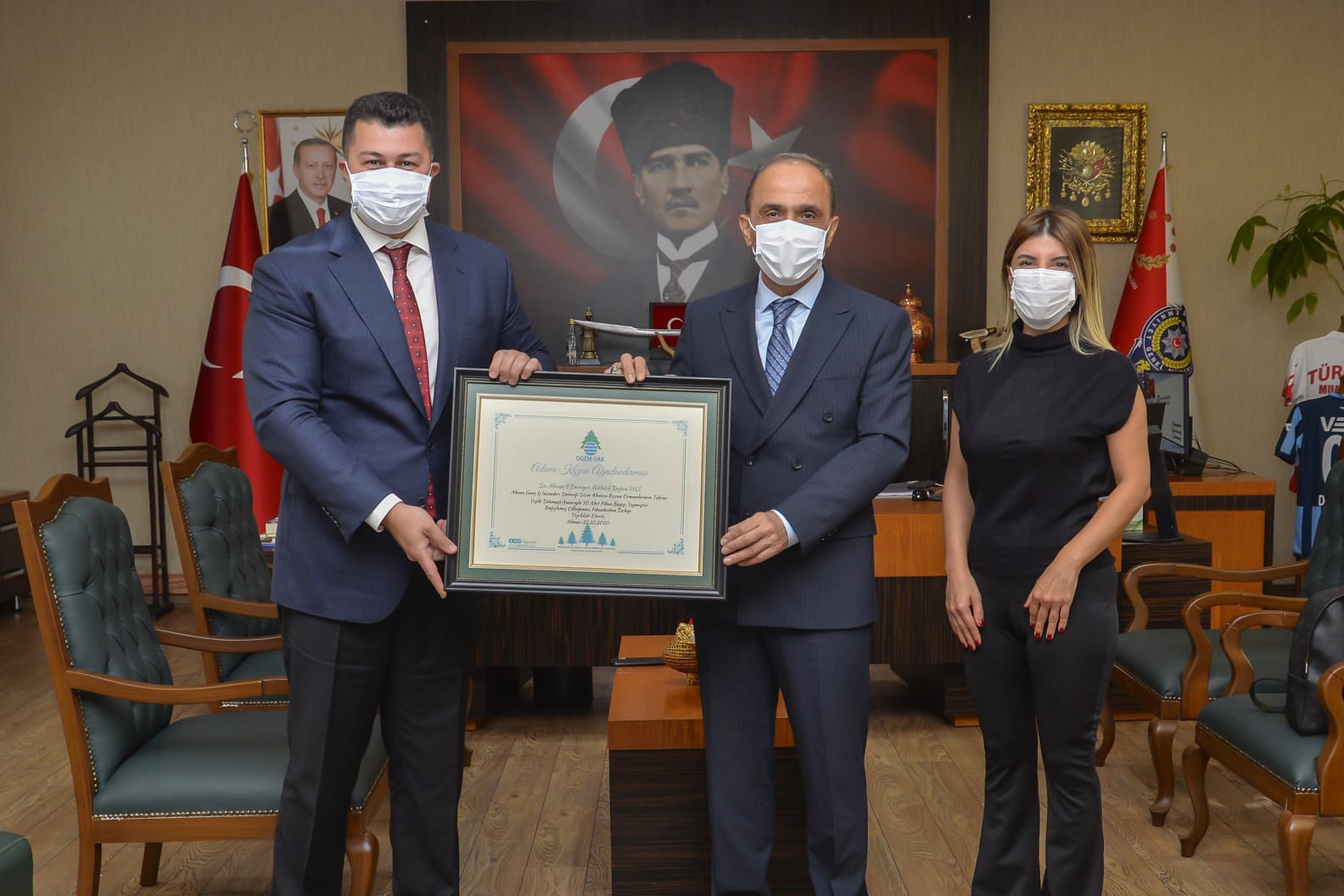 ADANAGİAD Yönetim Kurulu Başkanı Halid Milli ve Yönetim Kurulu Üyeleri, ilk olarak Adana Valisi Süleyman Elban'ı makamında ziyaret etti. Yangından sonra Kozan ormanlarının tekrar yeşile dönmesi için Vali Elban adına bağışlanan fidanların sertifikasını takdim eden ADANAGİAD Heyeti, kabulü ve ilgisi için de ayrıca teşekkür etti. Konuklarını ağırlayan Adana Valisi Süleyman Elban da, kentin yatırım, istihdam ve gelişimine katkı sağlayan, bu uğurda çaba gösteren herkesi kutlayarak çalışmalarında başarılar diledi.